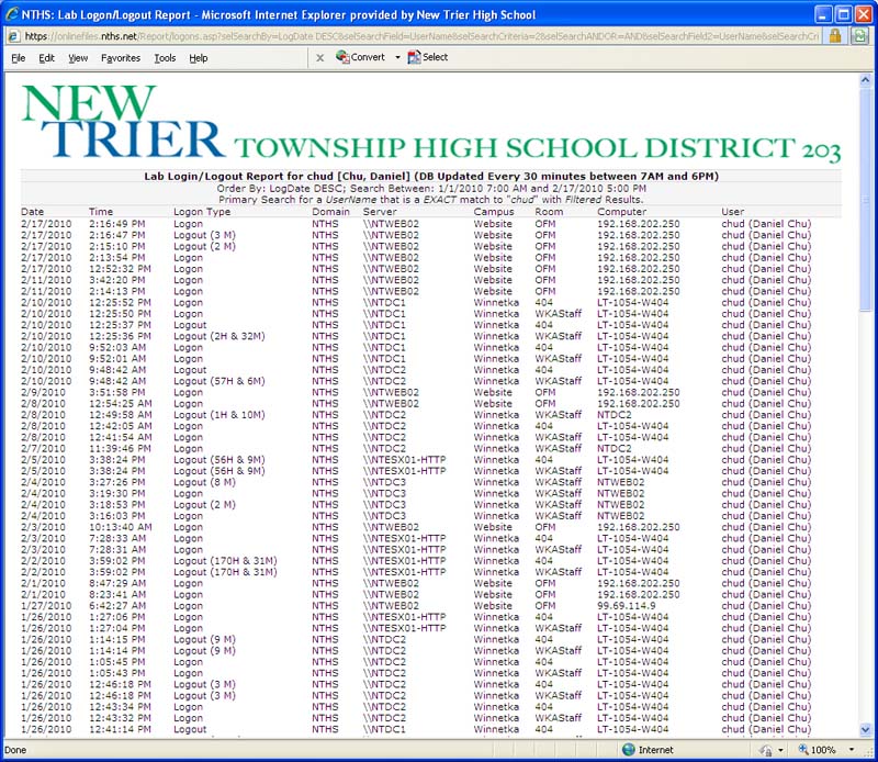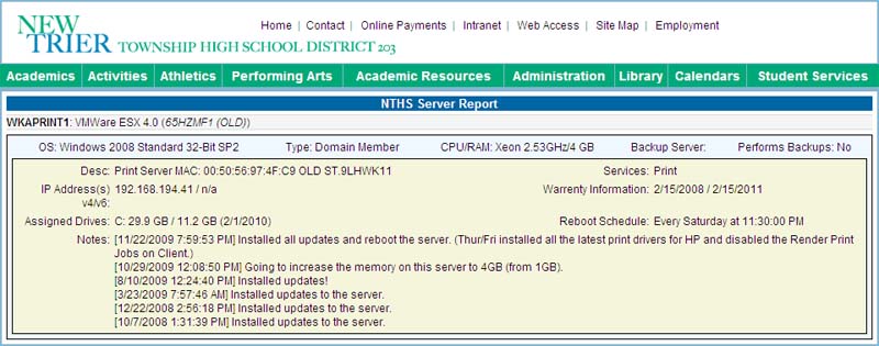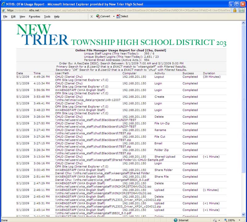 After starting with New Trier, one of our first efforts was to migrate the file servers away from Novell to Microsoft. This would mean we would lose a functionality of Novell for web based file sharing of the network shares. I suggested a product I had previously developed named "OFM" or "Online File Manager." After demonstrating this product, it was determined that it's use would meet the requirements and I began custom development of my product for the request of New Trier.